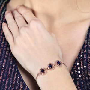The classic round design and captivating blue stones make this bracelet ideal for any occasion. Whether you're attending a wedding, going to a gala, or simply looking for an elegant piece to elevate your daily wear, the AD Round Blue Bracelet is versatile enough to complement a wide range of outfits. Its timeless appeal ensures it will never go out of style, making it a valuable piece for your jewelry collection.