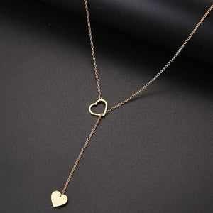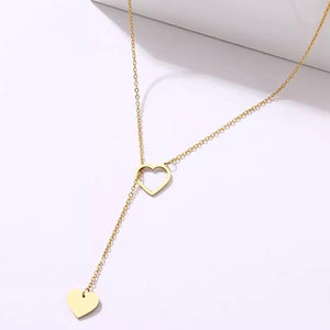 Celebrate love, simplicity, and timeless style with the Amora Double Heart Drop Necklace. This minimalist Y-chain features a sleek open heart at the center and a second solid heart charm that delicately drops down — symbolizing connection, depth, and emotion.