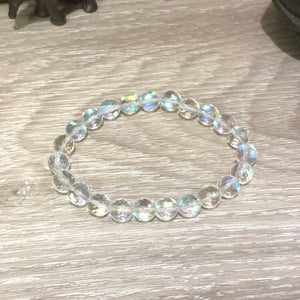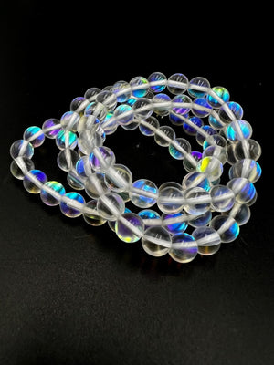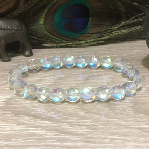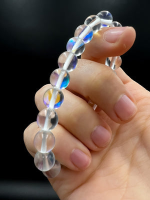 Each Aqua Aura Bracelet is handcrafted with care, featuring polished Aqua Aura beads that reflect light beautifully, creating a stunning display of color. The bracelet is designed to be both stylish and comfortable, making it suitable for daily wear or special occasions.