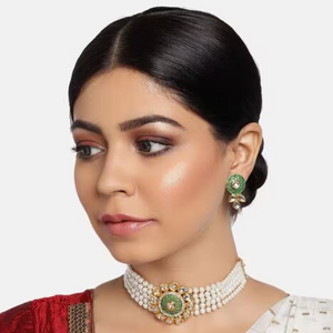 - Design: Traditional Kundan-studded necklace with intricate beaded detailing