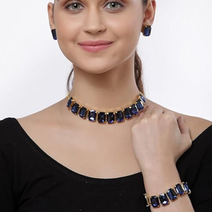 Blue Crystal Bracelet Earrings Necklace Jewelry Set for Women