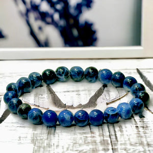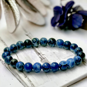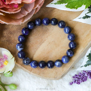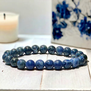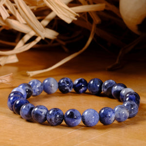 Sodalite Bracelet awakens psychic abilities, gives occult success, heightens intuition, awakens kundalini, develops universal wisdom, improves communication, gives clarity, promotes psychological health, clears confusions, and meets deficiencies.