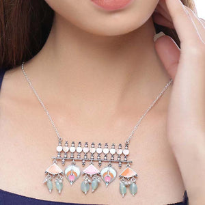 Crafted for the bold and free-spirited, this beautifully detailed oxidized silver necklace features a 30.35-inch long adjustable chain with a vibrant 3.15-inch wide pendant. Whether you're dressing up for a festival, brunch, or casual day out, this statement piece brings together tradition and trend in one stunning design.