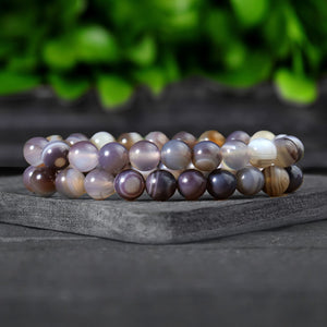 The Botswana Agate Bracelet is made from beautiful, naturally banded Botswana Agate gemstones, known for their soft, earthy tones and elegant layers of color. This gemstone is highly valued for its ability to provide emotional comfort, stability, and grounding during times of change and transition. It is an ideal bracelet for those seeking to navigate life’s challenges with inner peace and resilience. Known as the "Stone of Change," Botswana Agate is also associated with enhancing creativity and intuition, making it a powerful accessory for personal growth.