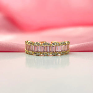Adjustable Golden Stone Studded Pink Cubic Zirconia Ring