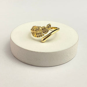Adjustable Golden Stone Studded Leaf Ring