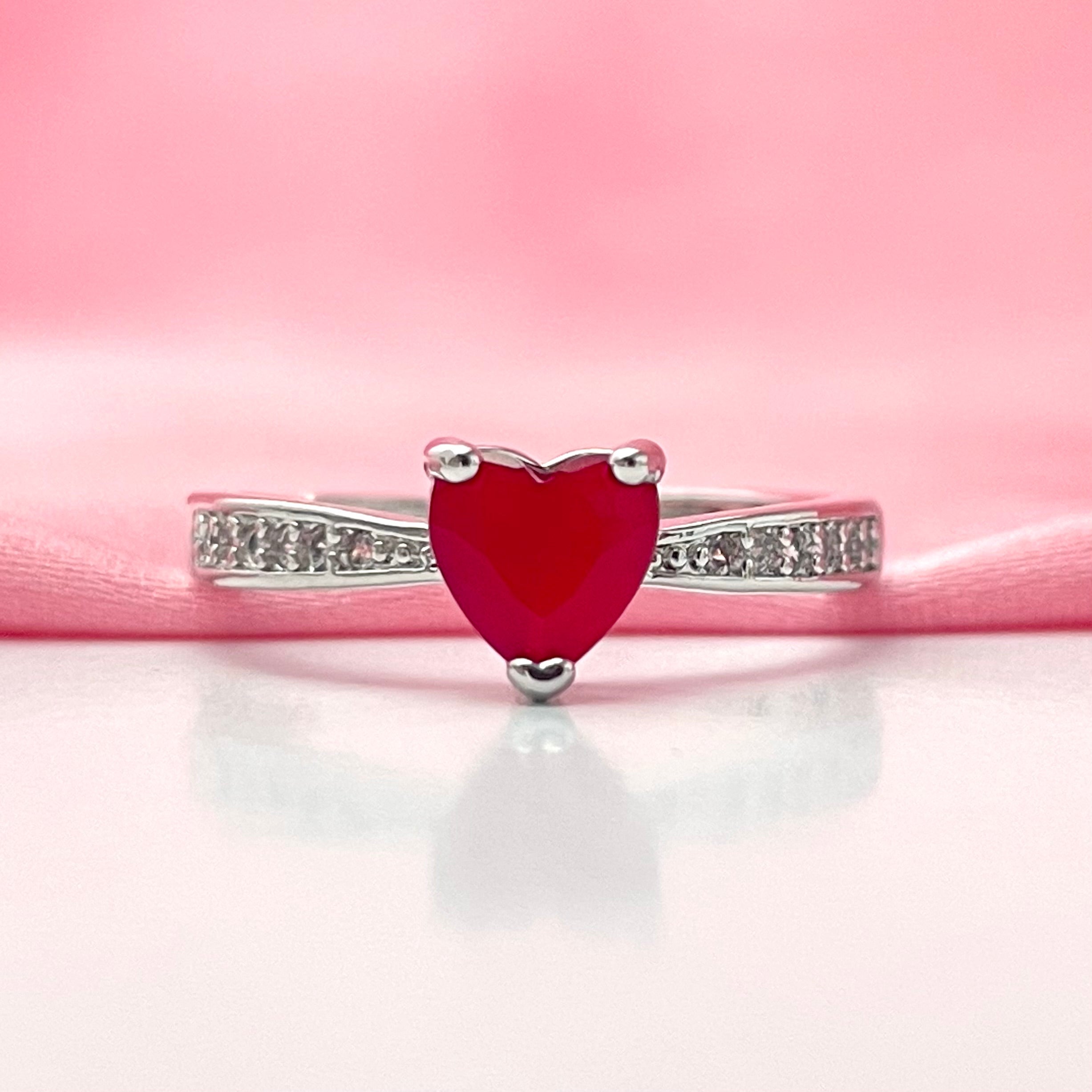 Adjustable Silver Dark Red Heart Stone Friendship Copper Ring