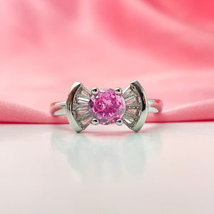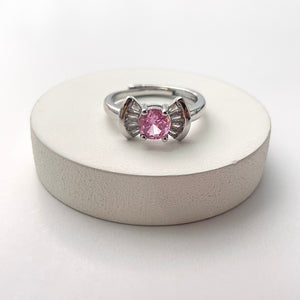 Adjustable Silver Pink Stone Vintage Copper Ring