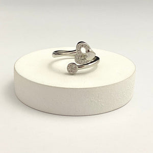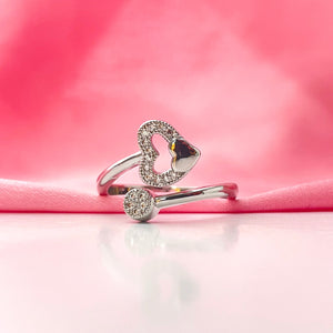 Adjustable Silver Heart Stone Studded Friendship Copper Ring