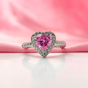 Adjustable Silver Pink Stone Studded Heart Friendship Copper Ring