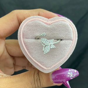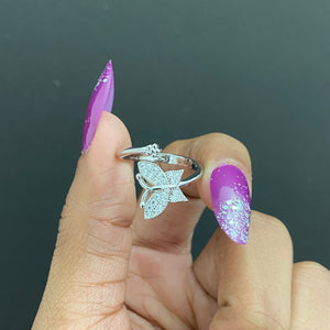 Adjustable Silver Stone Studded Butterfly With Small Flower Copper Ring