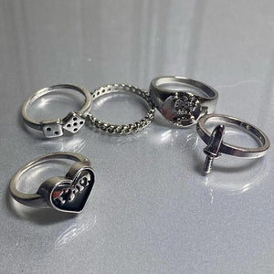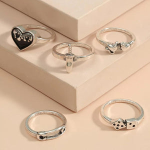 Fancy 5 piece Silver Stackable Ring Set for casual outfit