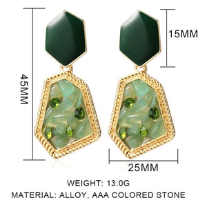 - Natural Stone Texture: The drop section is adorned with real-look green stone chips and crystal embellishments, encased in a gold-plated alloy frame. Every piece gives off a luxurious earthy vibe.