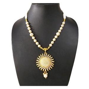 The necklace features a stunning combination of artificial stones and beads, creating a beautiful, cascading effect that sits gracefully on your neckline. The gold-plated chain ensures a secure and comfortable fit, while the stones and beads draw attention, making the necklace a focal point of your ensemble. -