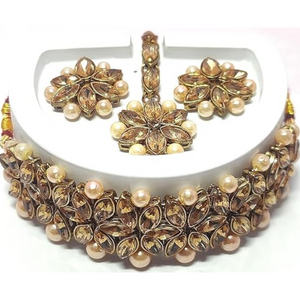 - Elegant Golden Pearls: The choker is adorned with premium golden moti (pearls) that reflect light beautifully, creating a radiant and sophisticated look.