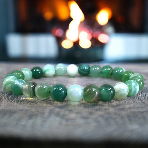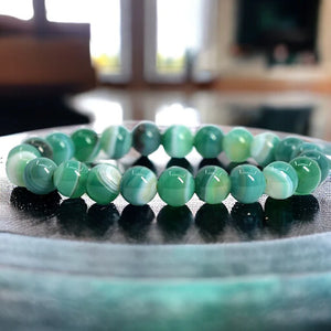 The Green Banded Agate Bracelet is known for its grounding and healing properties. It promotes emotional stability, strengthens concentration, and improves mental clarity. This stone is believed to attract abundance and prosperity while enhancing your self-confidence and inner strength. The Green Banded Agate also helps in balancing energies, soothing stress, and fostering harmony in relationships. Additionally, it supports physical healing, especially related to the heart and immune system, making it a perfect companion for overall well-being.