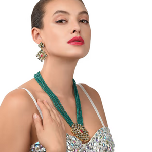 The Green Crystal Long Necklace Set brings a sense of sophistication to any look, making it suitable for a wide range of occasions, from weddings and parties to casual outings and work events. -
