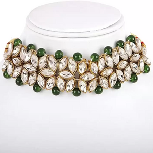 - Versatile Elegance: This green moti choker is perfect for pairing with green, gold, or cream-colored sarees, lehengas, or even modern ethnic outfits, adding a touch of grace and charm to any attire.