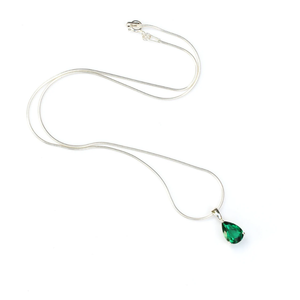 The accent square-shaped red stone, placed delicately next to the green diamond, creates a bold contrast that draws attention. The vibrant red color, often associated with passion, love, and energy, infuses the piece with warmth and intensity. The square shape adds a modern geometric twist, providing a sharp, structured edge that complements the smooth curves of the oval diamond. The combination of these two stones creates a dynamic and visually engaging design, making this pendant a true statement piece.