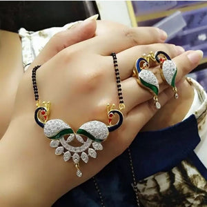 - Pendant: A beautifully designed peacock pendant that sits elegantly at the center of the mangalsutra