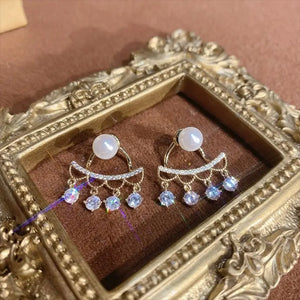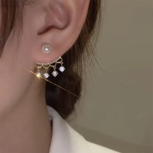 Korean Pearl Stud Dangler Earrings with Crystal Drops – Elegant Dual Layer Design