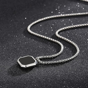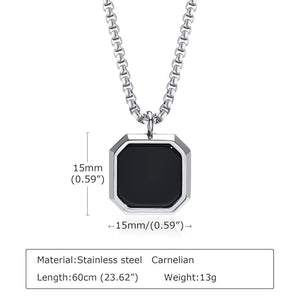 Introducing the Midnight Valor Octagon Pendant Necklace – a powerful statement of style and strength. Designed with a solid octagonal pendant made of polished stainless steel and deep black carnelian stone, this necklace is the perfect blend of rugged masculinity and refined minimalism.