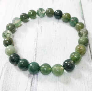 The Moss Agate Bracelet is a powerful grounding stone that connects you with nature and promotes tranquility. Known for its ability to enhance creativity and personal growth, this bracelet encourages emotional balance and prosperity. Wear it to invite positive energy, nurture your spirit, and embrace new beginnings on your journey.