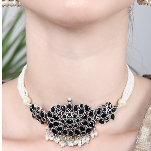 Timeless Elegance: The blend of oxidized black metal and lustrous pearls creates a piece that is both classic and contemporary. The necklace is versatile enough to complement both modern and traditional styles, ensuring it remains a staple in your jewelry collection.