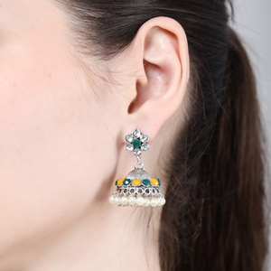 The Oxidized Yellow Green Beautiful Choker Necklace is a captivating piece of jewelry that blends vibrant colors with timeless vintage appeal. Featuring a stunning combination of yellow and green stones, this choker necklace is designed with an oxidized silver finish, offering an antique and regal look. Perfect for traditional occasions, festive celebrations, and cultural events, this necklace adds a rich and elegant touch to any outfit, making it a must-have accessory for those who appreciate classic beauty with a contemporary twist.