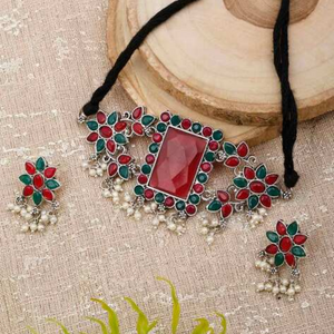 The Rectangular Red & Green Kundan Stone Choker Necklace is an exquisite fusion of traditional Indian artistry and modern design. Featuring a captivating combination of red and green Kundan stones, this choker adds a vibrant touch to any outfit. Whether you’re dressing up for a wedding, festival, or any grand celebration, this necklace is the perfect choice to make a bold and regal statement.