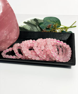 The Rose Quartz Bracelet is a symbol of love and emotional healing. Known as the stone of unconditional love, it opens the heart to promote deep self-love, compassion, and forgiveness. This bracelet encourages harmonious relationships, attracts love, and helps heal emotional wounds. Rose Quartz also eases stress, anxiety, and emotional tension, making it a soothing and comforting stone. It enhances inner peace, boosts self-esteem, and helps release negative emotions, making it an ideal accessory for emotional balance and well-being.