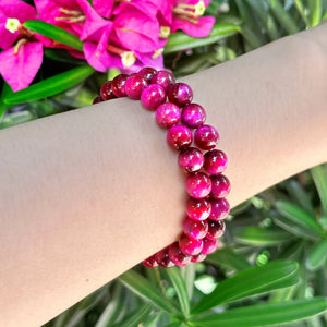 The Rose Tiger Eye Bracelet is a stunning gemstone known for its unique blend of pink and golden hues, symbolizing compassion and strength. This bracelet promotes emotional healing and balance, helping to release fear and anxiety while fostering self-confidence and courage. Rose Tiger Eye is also believed to enhance clarity of thought and insight, making it easier to make decisions and navigate life's challenges. Additionally, it encourages a sense of calm and tranquility, allowing you to embrace your true self. This bracelet is perfect for those seeking emotional stability and empowerment, making it a beautiful and supportive accessory for everyday wear.