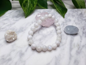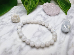 The White Quartz Bracelet activates higher chakras, bringing spiritual awareness and enhancing luck. It also elevates beauty, helps control emotions, and soothes irritations. Wearing this bracelet adds charm to your personality, removes obstacles during travel, and brings clarity to your thoughts. It improves relationships, fosters compassion, and helps attract easy income, making it a versatile and powerful stone for personal growth and well-being.